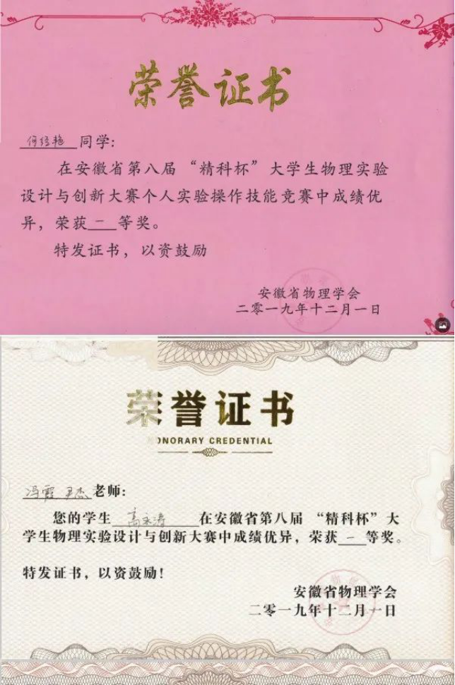 安徽省大学生物理实验设计与创新大赛-物理学高永涛、何经艳等荣获一等奖