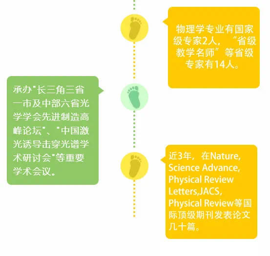 物理学专业有国家级专家2人,“省级教学名师”等省级专家有14人。大学物理教学团队是省级教学团队,“分子谱学及动力学”团队是省级领军人才团队,5人获国家级、省级青年教师教学比赛,已形成一支师德高尚、专兼结合、结构合理、教学科研水平高的师资队伍。