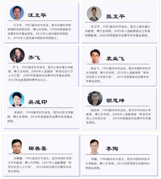 院士1人,国家杰出青年科学基金获得者10人;有百余名毕业生已成为基础教育界业务骨干、示范高中校长或教育行政部门主要管理者,以及众多成功企业界人士。