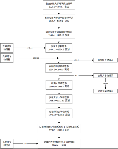 安徽师范大学物理学专业始建于1929年,源于省立安徽大学物理系,是全国建立较早的物理学专业之一。张文渊、金肖宗、夏敬农、雷瀚、吴锐等一批从国外归来的著名学者曾先后在这里任教和从事科学研究,形成了严谨治学的优良学风和深厚的学术底蕴。