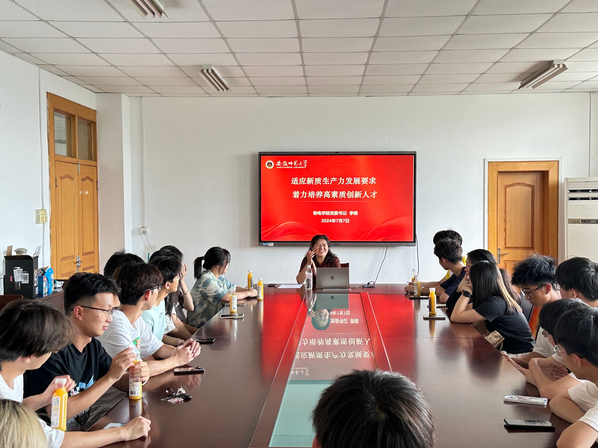李娟书记强调发展是第一要务,人才是第一资源,加快培育新质生产力,就要打造技术精湛、学习能力强、具备创新思维和团队协作能力,能够在快速变化的环境中实现自我调整和发展的新型劳动者队伍。会议的最后,她鼓励在场同学们大力发扬科学家精神,认真学好专业知识,坚定信念、矢志不渝,将来积极投身到这一伟大的历史进程中。