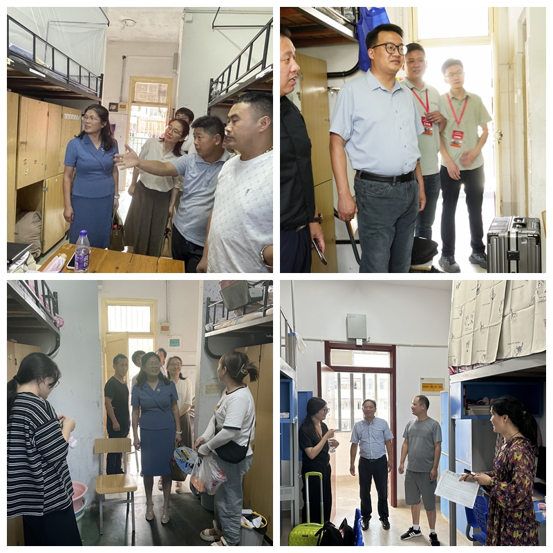 领导和新生辅导员深入学生宿舍,慰问正在整理宿舍的新生及家长,了解新生在校适应情况及生活需要。