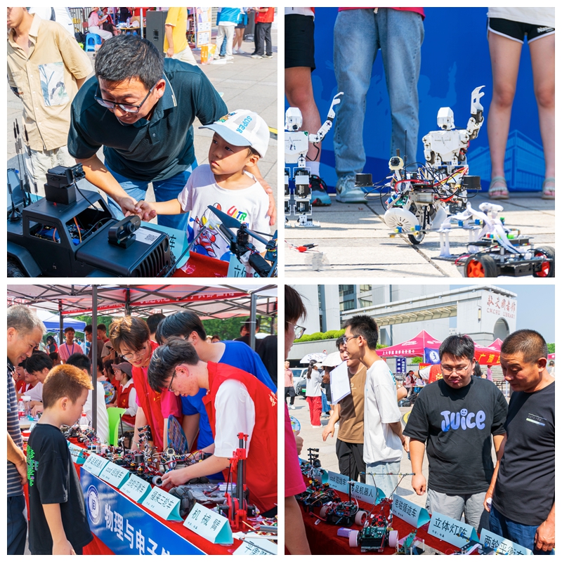 迎新现场,学术科技作品展台上展示着物电学子制作的科技作品,从工科学生研制的能歌善舞的机器人、风驰电掣的智能汽车、5G远程驾驶智能车到物理师范生自制的磁感应强度探究仪、法拉第电磁感应定律演示仪、光的折射探究仪等物理教具,通过学生志愿者专业演示与讲解,让新生们在展览中感受学科魅力,对自己所学专业有了进一步的认识。此外,免费足球直播app
