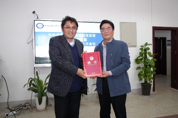 把实验室建设好、发展好,为我校高水平大学建设作出新的更大贡献。科研处长徐彬教授宣读了光电信息材料功能调控与应用安徽省重点实验室第二届学术委员会组成名单,高峰为各位到会委员颁发了聘书。