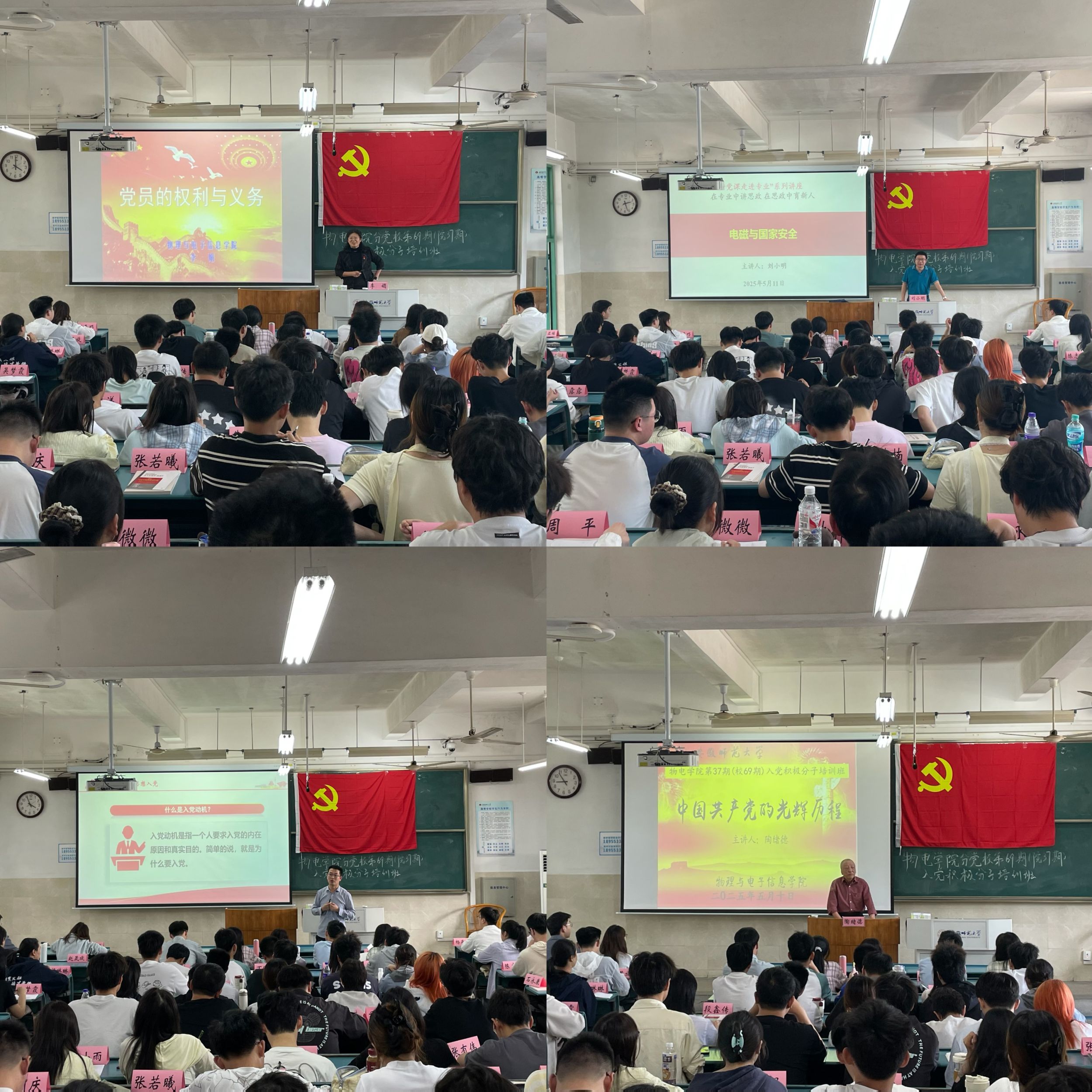 分党校邀请多位党政和学生管理工作资深专家老师为学员授课。陶绪德作了题为《中国共产党的光辉历程》专题辅导,校工会主席李娟深入浅出地为学员讲授了《党员的权利和义务》一课,校党委学工部部长、学生处处长邵登辉以《青年马克思与“我们”》为题唤醒学员的思考,校团委书记陈骁以《组织入党和思想入党》为积极分子们讲解入党前的思想准备,省优秀教师、电子信息工程专业系主任刘小明讲授了《电磁技术与国家安全》的专题报告,邹孝龙就《党的二十大报告学习辅导百问》开展辅导。
