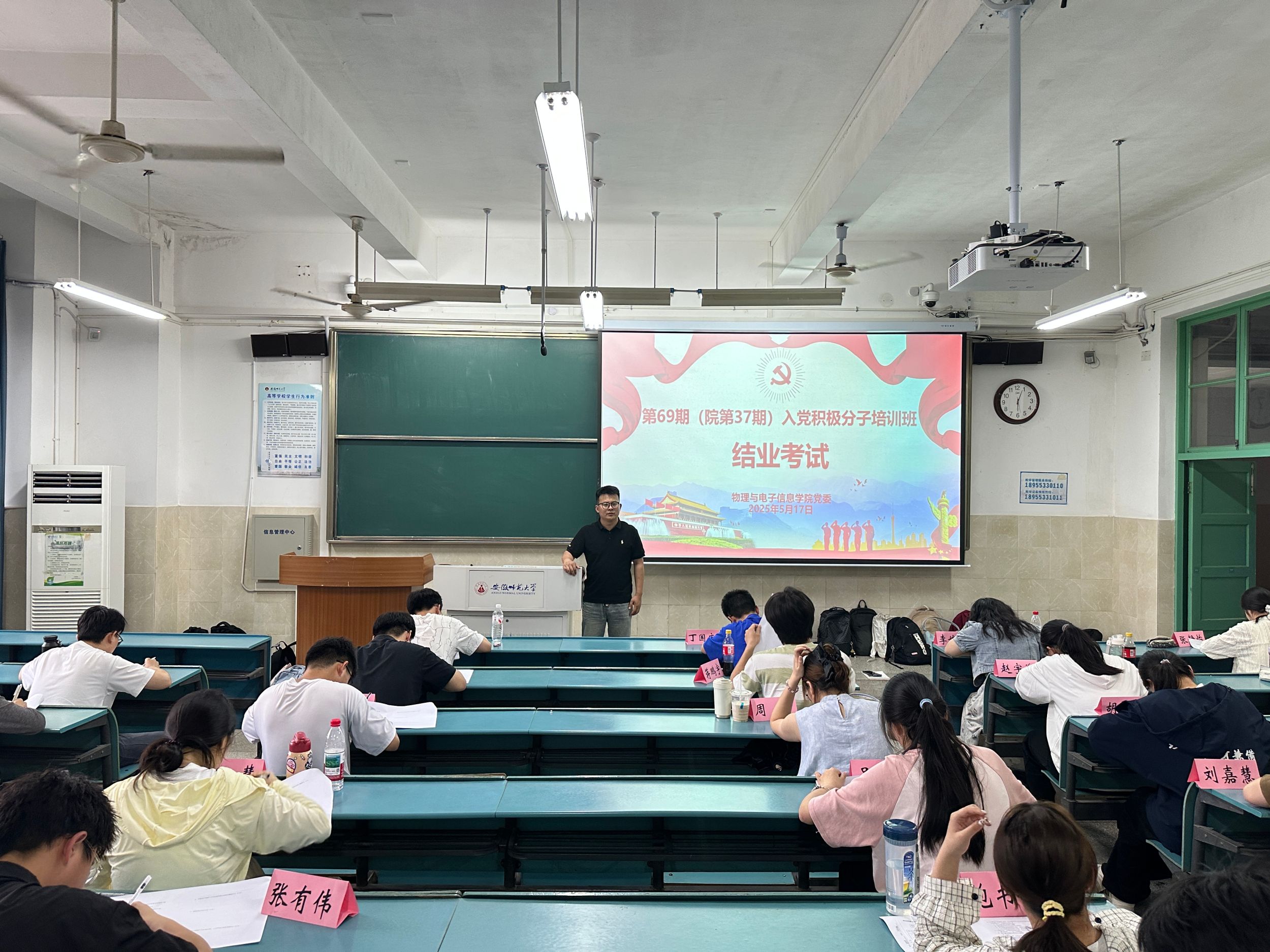 结业考试环节,为检验本期培训班入党积极分子思想理论修养和培训学习成果,5月17日晚,培训班103名入党积极分子在花津校区教学楼1号楼2010101、102教室参加结业考试。在考试过程中,学员们严格遵守考试纪律,认真答题,态度端正,展现出良好的考试风气,用实际行动向组织交了一份满意的答卷,以认真的态度表明了积极向党组织靠拢的决心。