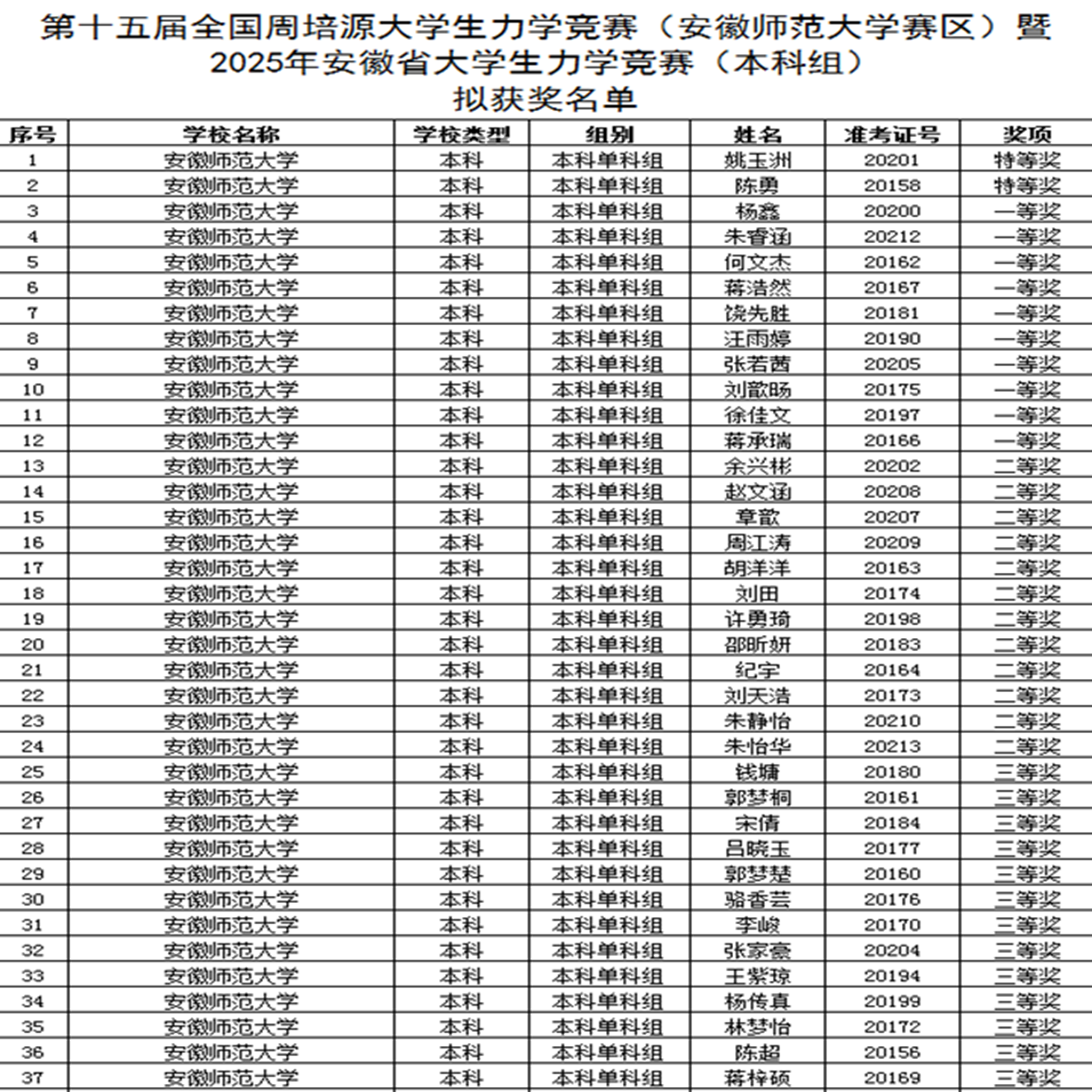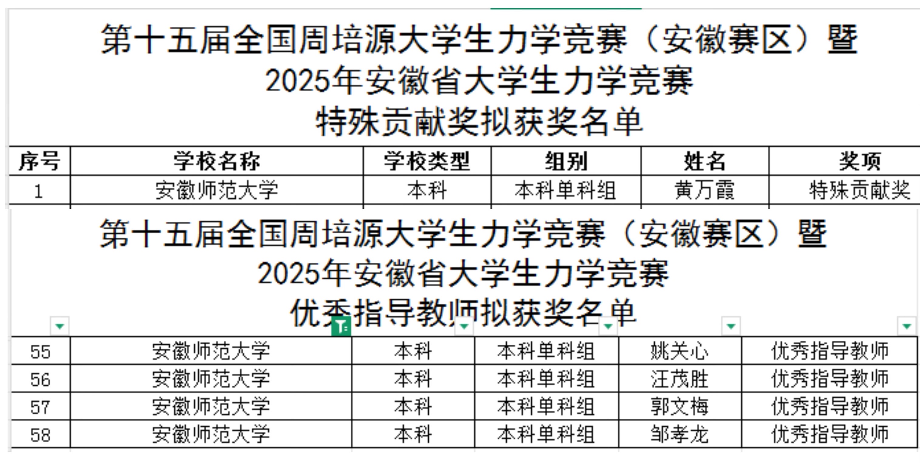 6月9日,2025年安徽省大学生力学竞赛成绩公布,物电学子在本届竞赛中再创佳绩,共荣获特等奖2项,一等奖10项,二等奖12项,三等奖13项,总成绩创历史最佳!物电黄万霞教授荣获特殊贡献奖(全省仅2名),汪茂胜、姚关心、郭文梅、邹孝龙4位教师荣获“优秀指导教师”称号。