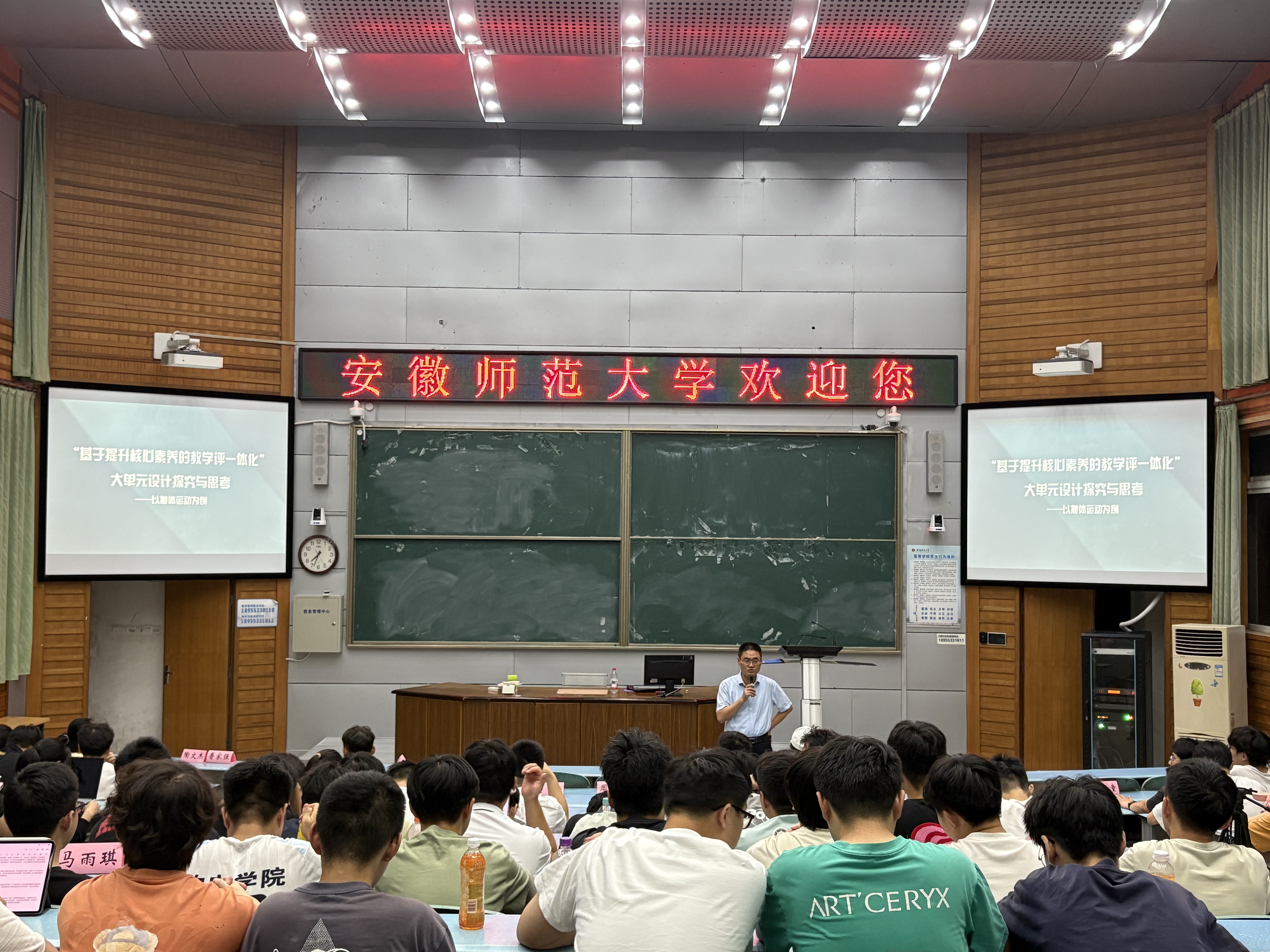7月16日,蔡胜国老师作题为《“基于提升核心素养的教学评一体化”大单元设计探究与思考》专题辅导报告,报告指出,核心素养是行为素养、行为能力,是知识、技能、态度的统整与超越;大单元整体教学是落实学科核心素养的关键环节;探索‘教学评一体化’在教学设计与实施中的实践路径。