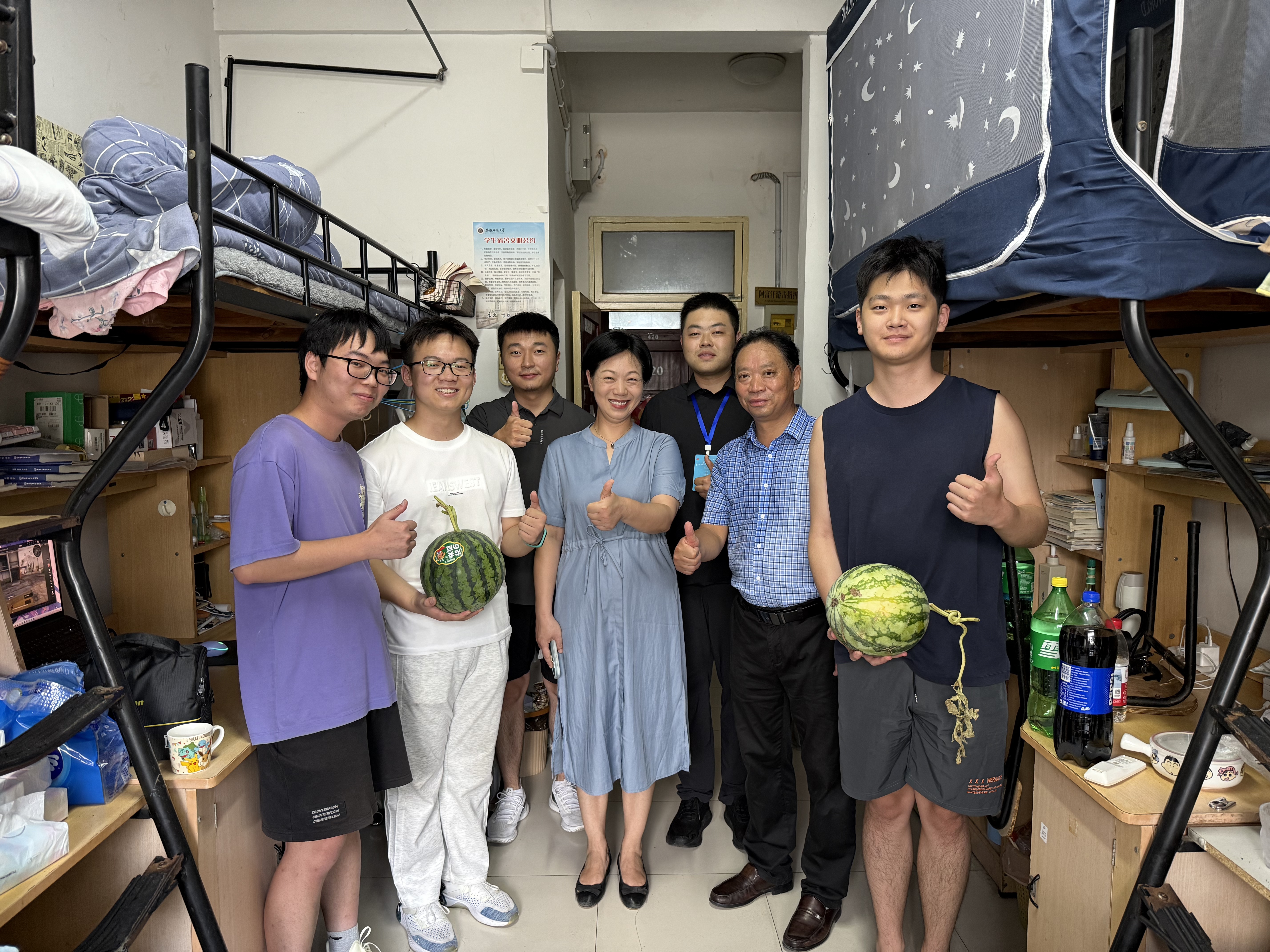 还为留校学生发放了西瓜、饮料等消暑慰问品,让学子们在炎炎夏日感受到暖心关怀。