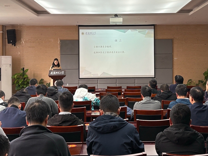 邀请校党委统战部副部长李叶青为全体教职工作题为《抵御和防范宗教向学校渗透》的专题辅导报告。李叶青在报告中为教师们梳理了宗教相关科普知识,分析了当前抵御和防范宗教向高校渗透工作所面临的新形势和新问题,重点结合丰富的案例系统地向教师们讲解了国家相关法律法规和新时代党的宗教工作理论和方针政策,指导老师们按照“九个必须”的要求做好学生思想政治教育工作。