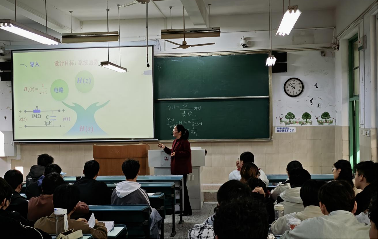 本次公开课上,王桂丽老师引导2023级电子信息工程专业学生系统学习Butterworth低通滤波器的设计方法。她从指标分析、特性拟合到参数估计,逐步搭建知识框架,讲解层层深入,最终让学生对设计步骤的理解水到渠成。不仅如此,王老师还深度融合信息化教学手段,在课前通过“学习通”平台发布预习任务,引导学生们先行思考、初步探索,为课堂学习奠定了良好的基础。授课时,王老师板书工整,推演细致;更巧用实例,化难为易,将抽象理论讲解得深入浅出,趣味盎然。她还尤为注重新旧融合,帮助学生构建体系,融会贯通,尽显启发教学之妙,堪称一堂示范性精品课。
