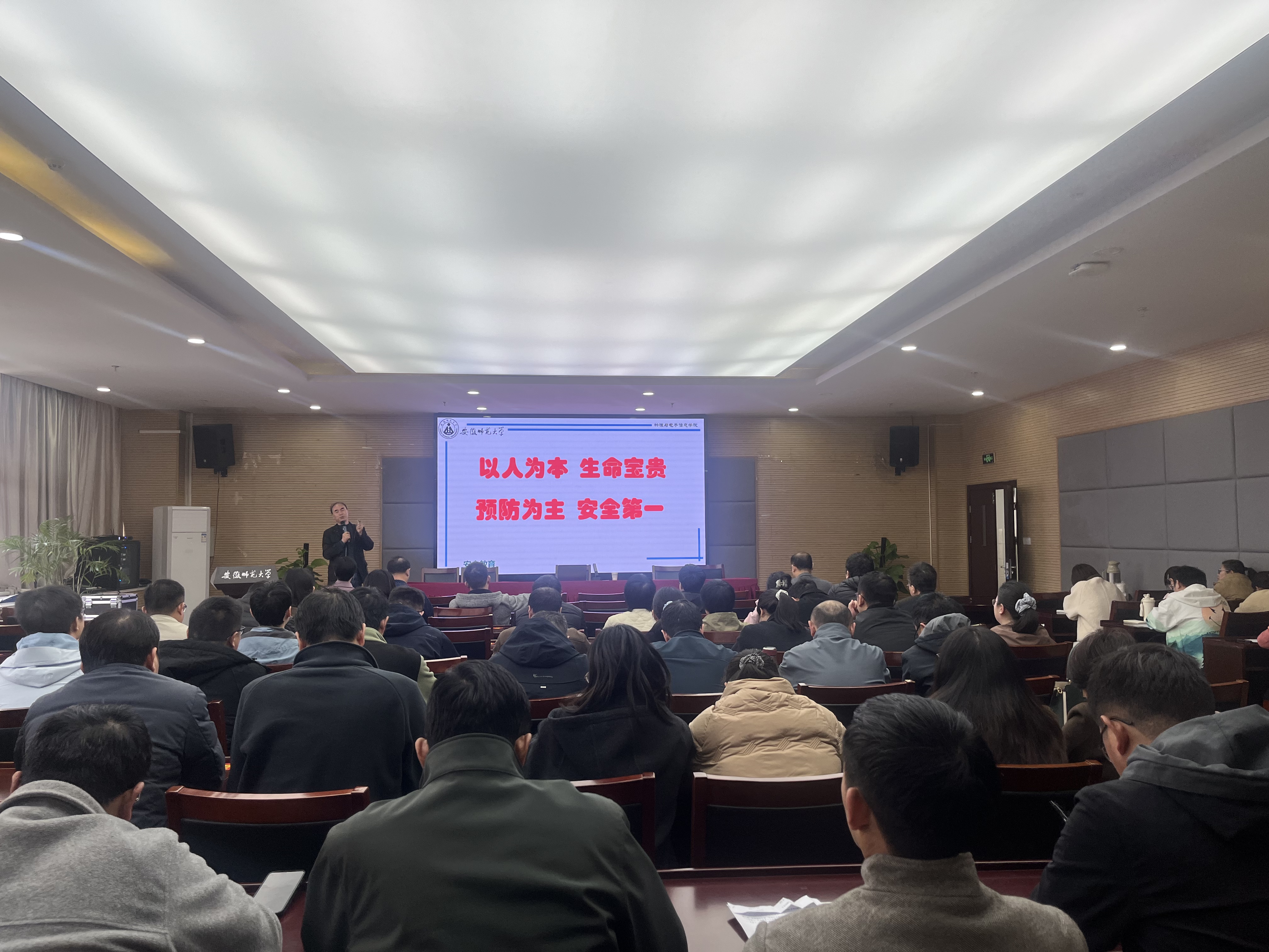 工科实训中心主任蔺玉柱为教职工做专题辅导报告。蔺玉祝在讲座中结合自身多年实验中心管理经验,就如何强化实验安全意识,增强安全防范能力为同事们做出细致指导,提醒大家深刻认识实验室安全工作的重要性和紧迫性,坚持“安全第一、预防为主”,时刻绷紧安全之弦,以“时时放心不下”的责任感和“事事落实到位”的执行力确保学生安全。