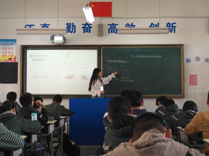 金伟老师指导16级物理专业管宝芮同学精心准备的一节公开观摩课。课上,实习生结合高中生的实际情况,精心准备,通过巧妙的导入、充分的探究与互动,让高中生在轻松愉快的氛围中掌握知识目标,充分展示了实习生扎实的专业水平。