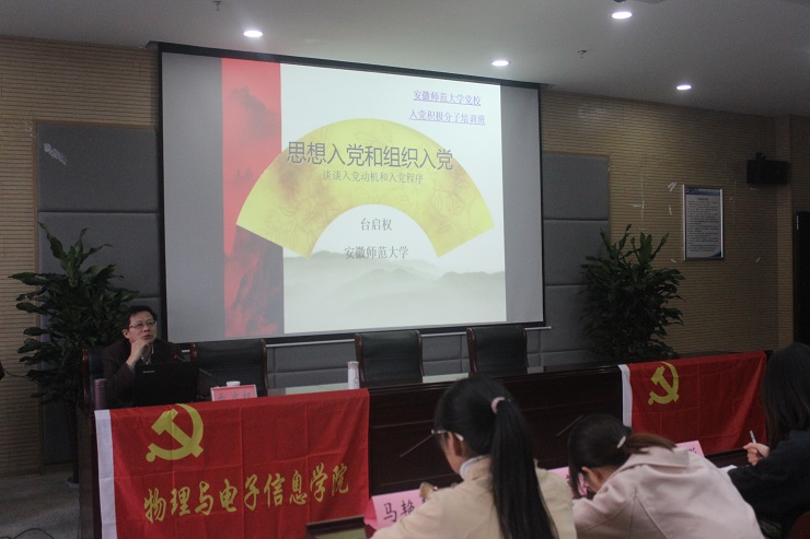 分党校在物理楼304会议室组织进行了培训班集中授课,资产处处长台启权老师为全体学员作思想上入党和组织上入党专题培训。