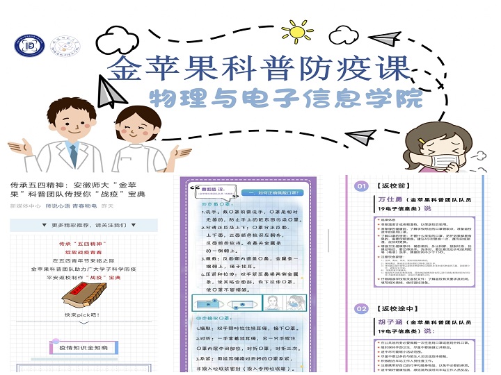 金苹果科普团队在微信、微博、官方QQ等新媒体平台同步推出《金苹果科普“战疫”宝典》。本次专题科普课程从新冠病毒、日常防护、返校注意事项等内容多角度、全方位地进行防疫知识科普,助力广大学子科学防疫、平安返校。