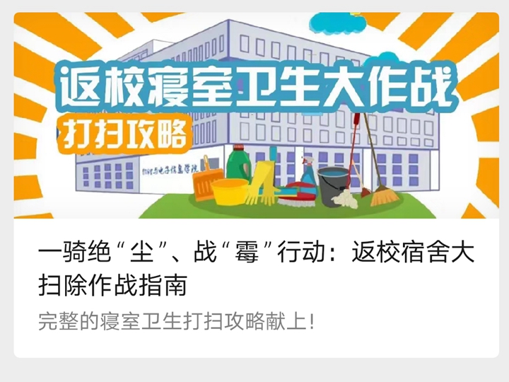 通过暑期线上家访、今日校园信息填报,及时掌握学生返校前行动轨迹和健康情况,严格落实返校学生申请审核制度,把好疫情防控“安全关”。全体辅导员召开线上班会及时将各项事宜通知到位,提醒学生注意返校途中个人防护,建议学生备好体温计、消毒液等防护用品。院团委微信推送返校宿舍“卫生大作战”,动员学生积极开展返校后卫生大扫除活动。