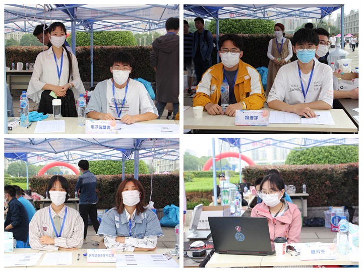 迎新工作人员和志愿者提前到场做好准备,根据学校有关校园疫情防控文件要求,分批次轮班服务。在报到现场,志愿者统一着红马甲、佩戴工作牌,带领新生进行“安康码”查验、完成人脸识别、领取报到材料和住宿寝室确认。在迎新站点还设置家长休息处、饮水处,确保了每名新生从报到处到寝室的“一站式”服务,让新生一进校门便充分感受到“物电温度”。