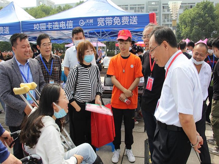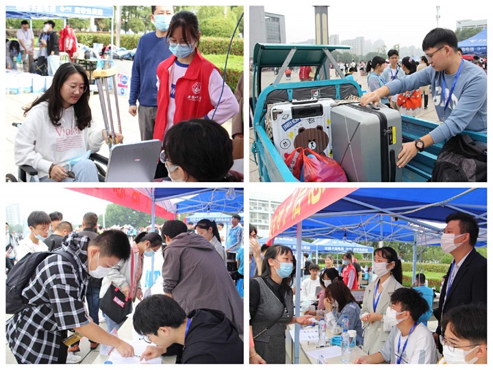 全体领导班子成员来到现场,检查指导新生报道及疫情防控工作,并亲切慰问新生和志愿者。