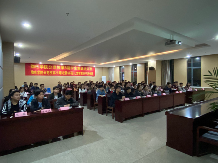 分党校第八期学生党员培训班及第二十八期(校第六十期)入党积极分子培训班在物电楼304开展了集中观看红色影片活动。培训班副班主任邹孝龙安排学员们观看了《血战湘江》。