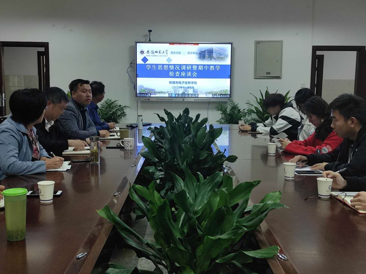召开新学期学生思想调研暨其中教学检查座师生谈会,院领导李娟、张其芳、许新胜,相关专业负责人及行政人员、全体专兼职辅导员,各年级学生代表参加了座谈会,会议由院党委副书记黄友生主持。