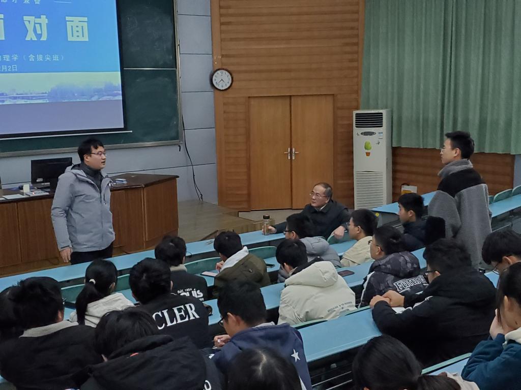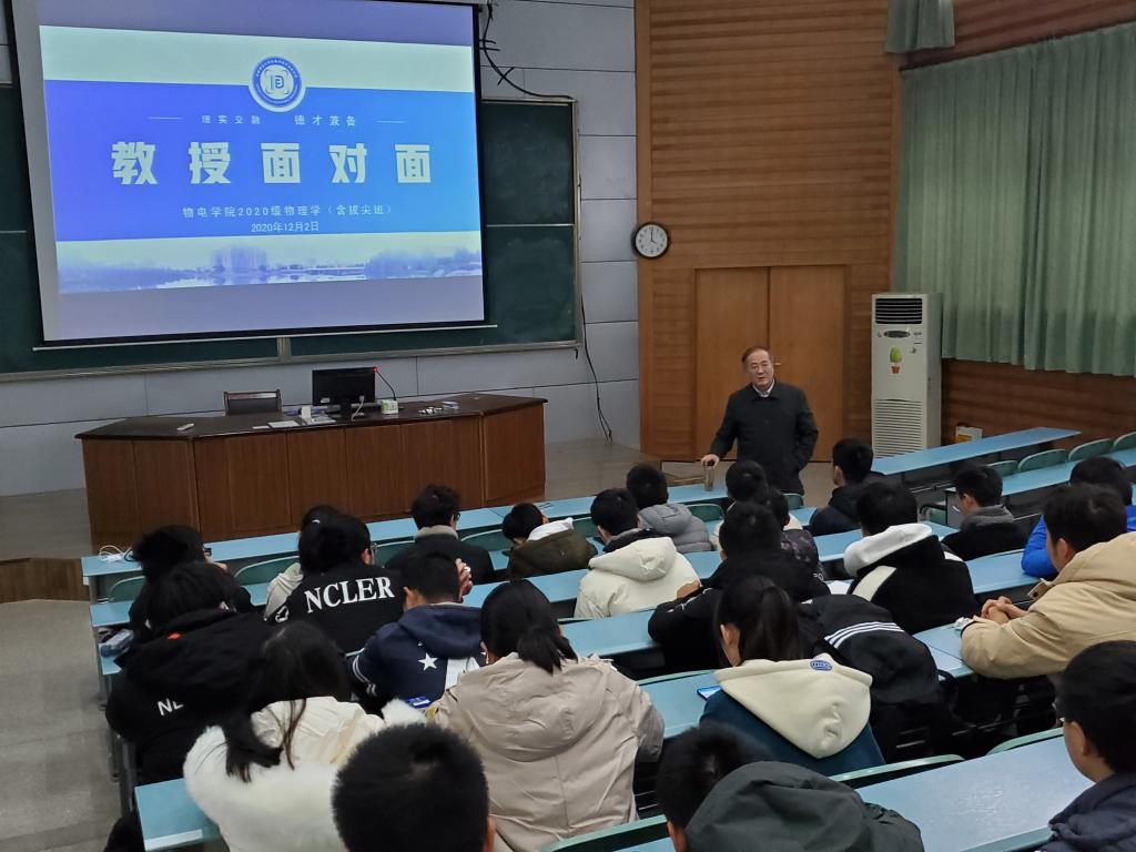 与物理学专业的发展,希望同学们立足学校、专业,树立自豪感,志存高远,奋发努力。他从学会独立生活、调整好读书姿态、夯实专业学习、专业阅读、读书方法、珍惜时间等方面为同学们做了具体细致的指导。