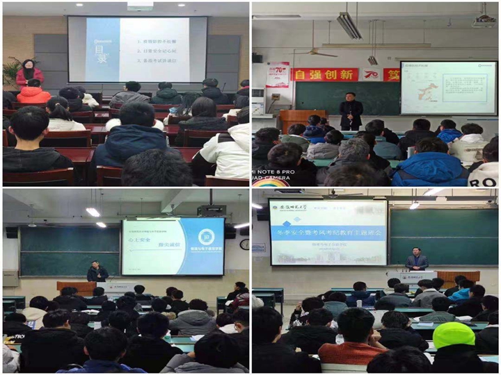 各辅导员通过召党员会议、班委会、寝室长安全会议等方式要求学生骨干、学生党员发挥“四自”作用,以身作则,模范带头;强化安全委员、寝室长工作职责,落实晚点名制度。同学们共同学习《安徽师范大学学生违纪处分条例》《安徽师范大学考场规则》等相关条例,并在班干的带领下进行诚信考试宣誓,签订诚信应考承诺书,营造公平公正的考试氛围。