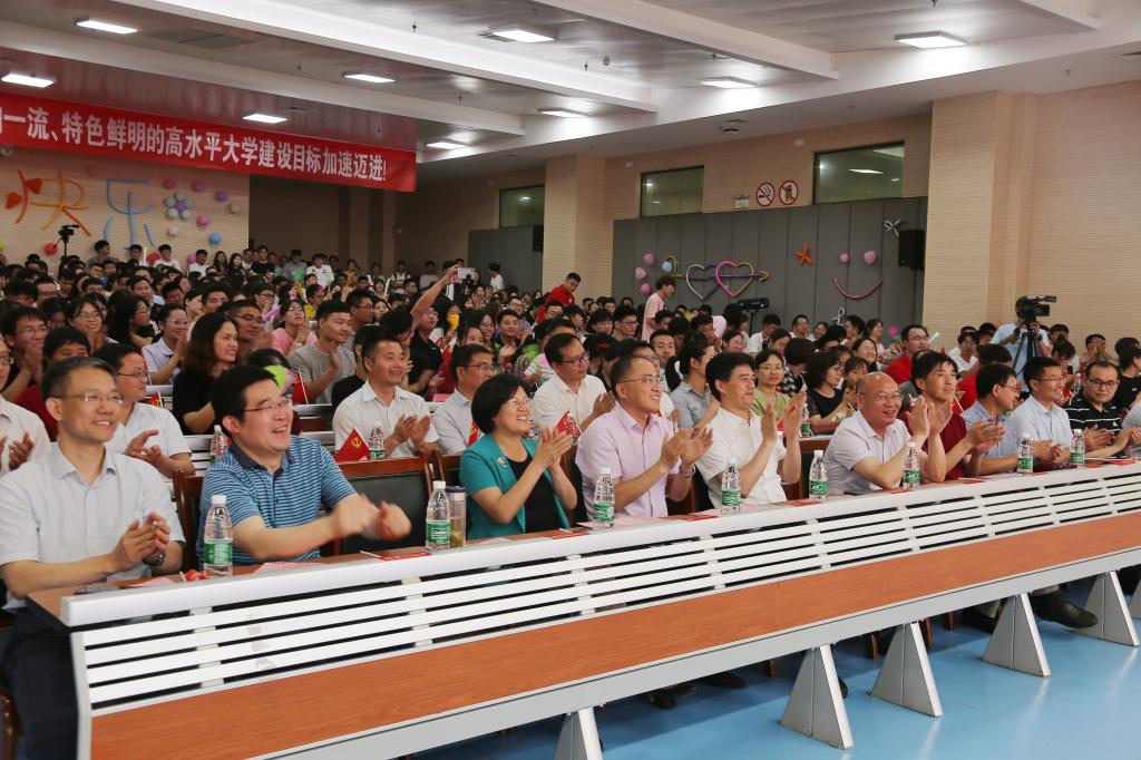 老师们对毕业生们的美好祝愿和殷切期望,走过的道路师生相伴成长,有梦就追,永远朝阳。晚会最后,全体师生合唱《没有共产党就没有新中国》,用歌声向我们伟大的中国共产党致敬。