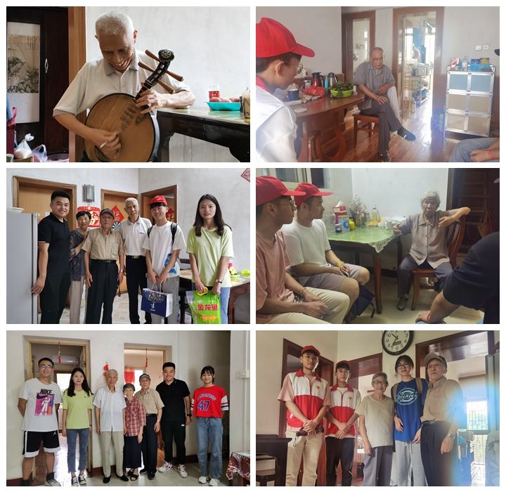 的建设与发展做出的贡献。走访慰问期间,志愿者了解到很多老同志在退休之后仍然不忘初心,积极发挥余热,为社区和群众服务,处处发挥先锋模范作用,十分钦佩。老教师斯文珍向志愿者们讲述了她当时在求学路上所发生的有趣的故事,教导青年党员知所从来,方明所去。84岁高龄的卢秉嵩老师提到,新青年处在好时代,国家和社会提供了很好的学习环境,青年学子生要把握机会,牢记使命担当,在不懈奋斗中绽放青春之花。建党百年之际开展走访老党员活动具有非常特殊重大的意义,激励着每一位党员志愿者勇往直前,志愿者们纷纷表示,这既是一场丰盛的思想盛宴,又是一次鲜活的党史学习教育,更为今后不忘初心、砥砺前行提供强有力的精神支柱。