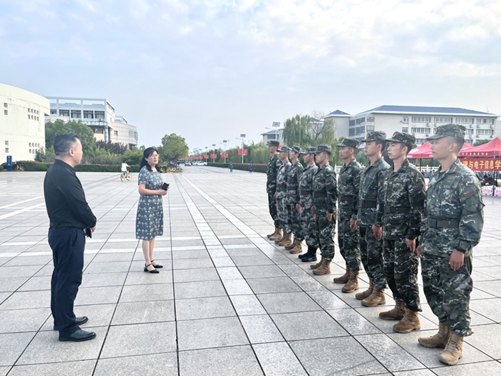 李娟指出军训不仅是一堂国防教育课,更是培养爱国主义精神的大课堂,希望承训教官们继续坚持严格施训、科学施训、安全施训,发扬部队优良传统和作风,增强新生的组织纪律性,培养新生的昂扬斗志和坚强毅力;希望新生加强团队精神和合作交流意识,在军训中体会团队协作的力量,增强集体荣誉感,自觉将“团结就是力量”的人生积淀应用到今后的生活中;希望参训教官能够将国防教育课从讲台上开到训练场上,进一步激发学生的家国情怀和国防意识。