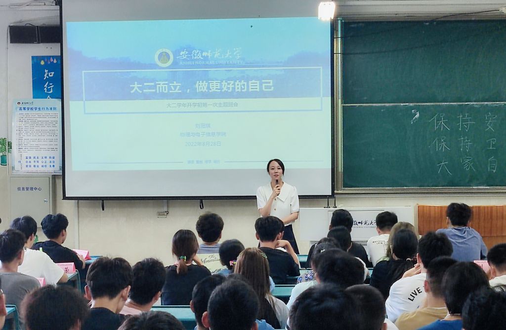 出身理工科专业的刘冠琪深知,如果想走得更远,就需要在陪伴学生成长成才的同时深耕职业化专业化发展。工作以来,刘冠琪一直将理论研习与技能锤炼相结合,曾获2022年安徽省高校辅导员素质能力大赛特等奖、安徽省首届高校辅导员精彩主题班会大赛一等奖、 安徽省第四届“微团课”评选活动一等奖、安徽省教科文卫系统“书润匠心”读书征文活动一等奖、安徽省共青团“喜迎二十大 建功新时代”团青箴言征集活动一等奖等省市级奖项10项。“刘老师是出了名的‘拼命三郎’,创建校‘十佳’班集体的时候,刘老师就带着我们一起,既亲力亲为,也倾力指导。把事情做到极致,是她留给我最深刻的印象。”2022届物理学(师范)专业班长郭昌繁如是说。