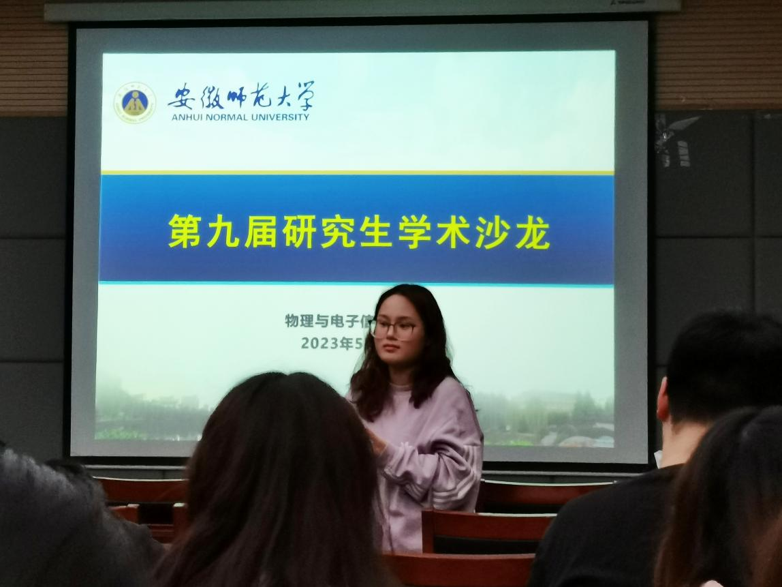 本届学术沙龙邀请到了2022年国家奖学金获得者——2020级课程与教学论专业硕士研究生余琼和2020级物理学专业硕士研究生杨磊为大家作报告。首先,余琼作题为《中学物理“功”概念学习进阶研究》的报告。她从中学物理教学中的“功”概念谈起,向同学们介绍了“功”概念的进阶框架,详细地分享了该课题研究过程,并穿插了丰富的物理教学领域研究方向和研究方法的选择问题。余琼从师范生实际需要出发选题,语言风趣幽默,报告内容丰富详实,展现了其深厚的理论基础与扎实的基本功。据悉,余琼在硕士期间共发表了六篇研究成果文章,其中《在高中物理课程中融入思政元素的探索》一文被人大复印转载资料全文转载,在校期间荣获过“一等学业奖学金”、“优秀研究生干部”等多项荣誉,被评为“2023年安徽省普通高等学校优秀毕业研究生”。