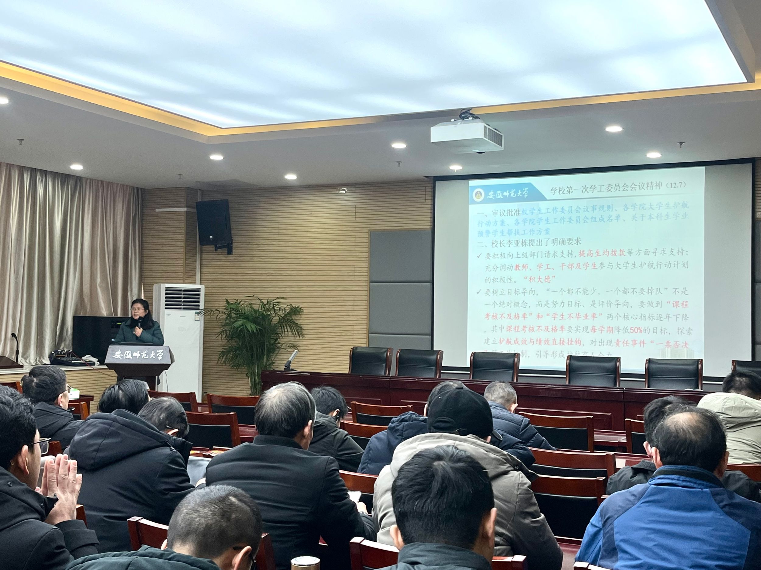 李娟领学了习近平总书记主持召开深入推进长三角一体化发展座谈会时发表的重要讲话和中央经济工作会议精神。与会人员观看新闻视频,集中学习了省委书记韩俊在安徽师范大学调研时的重要讲话,李娟介绍了韩俊来校调研情况,指出要贯彻落实韩俊书记关于“落实立德树人根本任务,推动高等教育内涵式高质量发展”等重要讲话精神。李娟还详细传达了学校第一次学工委员会会议精神,就落实免费足球直播app