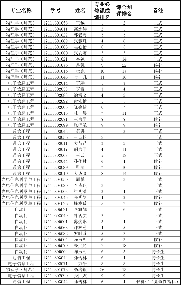 推免生遴选工作小组对符合条件的应届本科毕业生进行了审核遴选,拟推荐以下同学为2021届本科毕业生免试攻读硕士学位研究生人选(含候补人选)。现将名单予以公示。