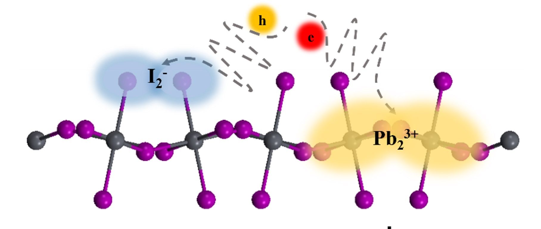 大连化学物理研究所金盛烨/田文明课题组以及中国科学技术大学武晓君课题组合作,在二维钙钛矿激子解离机制研究中取得新进展。合作团队以饱和环烷胺为配体设计合成了一系列新型R-P型二维钙钛矿量子阱,利用配体策略工程有效调控二维钙钛矿晶体结构,结合超快光谱实验与密度泛函理论计算发现了高限域材料中的激子高效自发分离新机理。研究表明,钙钛矿层为了适应更小的环丙烷胺与环丁烷胺配体,在生长过程中变得更加扭曲,显著减小了相邻[PbX6]晶胞中Pb2+和I-之间的距离,从而形成Pb23+和I2-二聚体,能够有效地捕获电子和空穴,并形成局域内建电场,实现室温下的限域斯塔克效应。