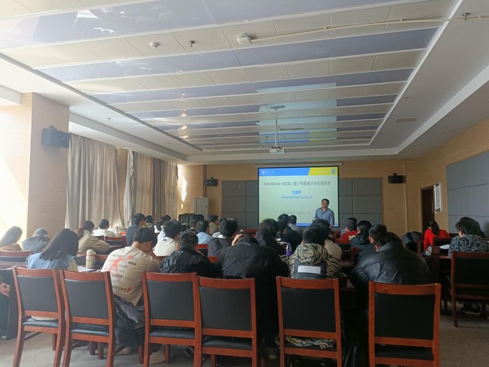 报告会上,沈成平教授主要介绍了近年来Belle和Belle II实验的中国组在粲重子领域取得的成果。沈老师首先以通俗易懂的方式,对粒子物理学的基本概念进行了科普讲解,介绍了相关学科的发展历史,让大家对研究内容有整体上的认识。然后介绍了Belle(II) 实验,以及我国的研究团队在粲强子、B物理、奇特强子态、底偶素、超出标准模型的新物理等方面所取得的重要研究成果,包括发现四夸克态、精确测量D介子的混合参数、首次测量粲重子的绝对衰变分支比等。此外,沈老师还分享了他的团队在科研道路上的一系列经历,总结了研究经验和教训。报告会结束后,与会师生同沈成平教授围绕Belle(II) 实验相关的科学问题,以及本科生和研究生未来学术道路规划进行了热烈的讨论和交流。