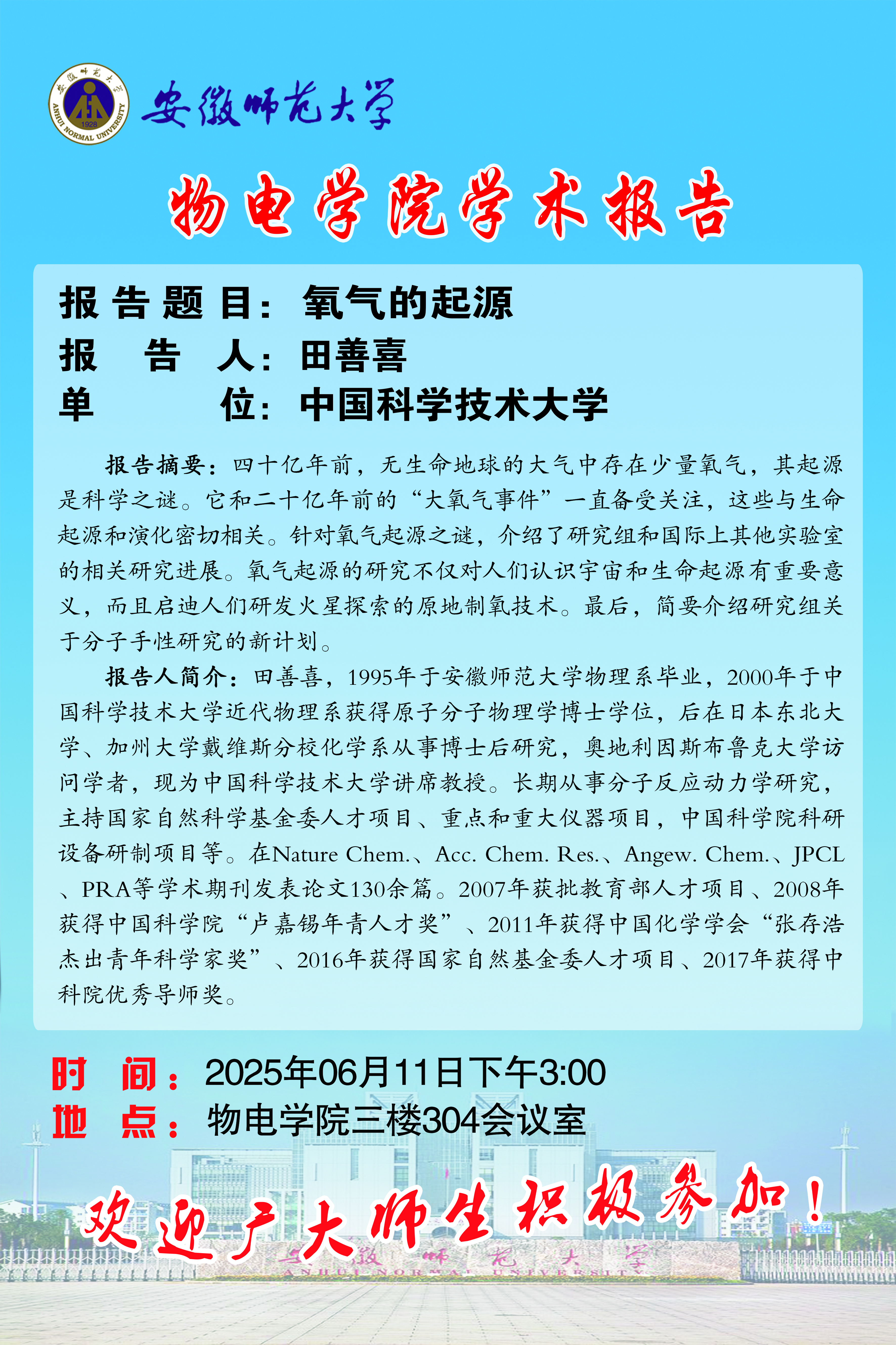 地址:花津校区-安徽省芜湖市九华南路189号 邮编:241000 电话:0553--3869894