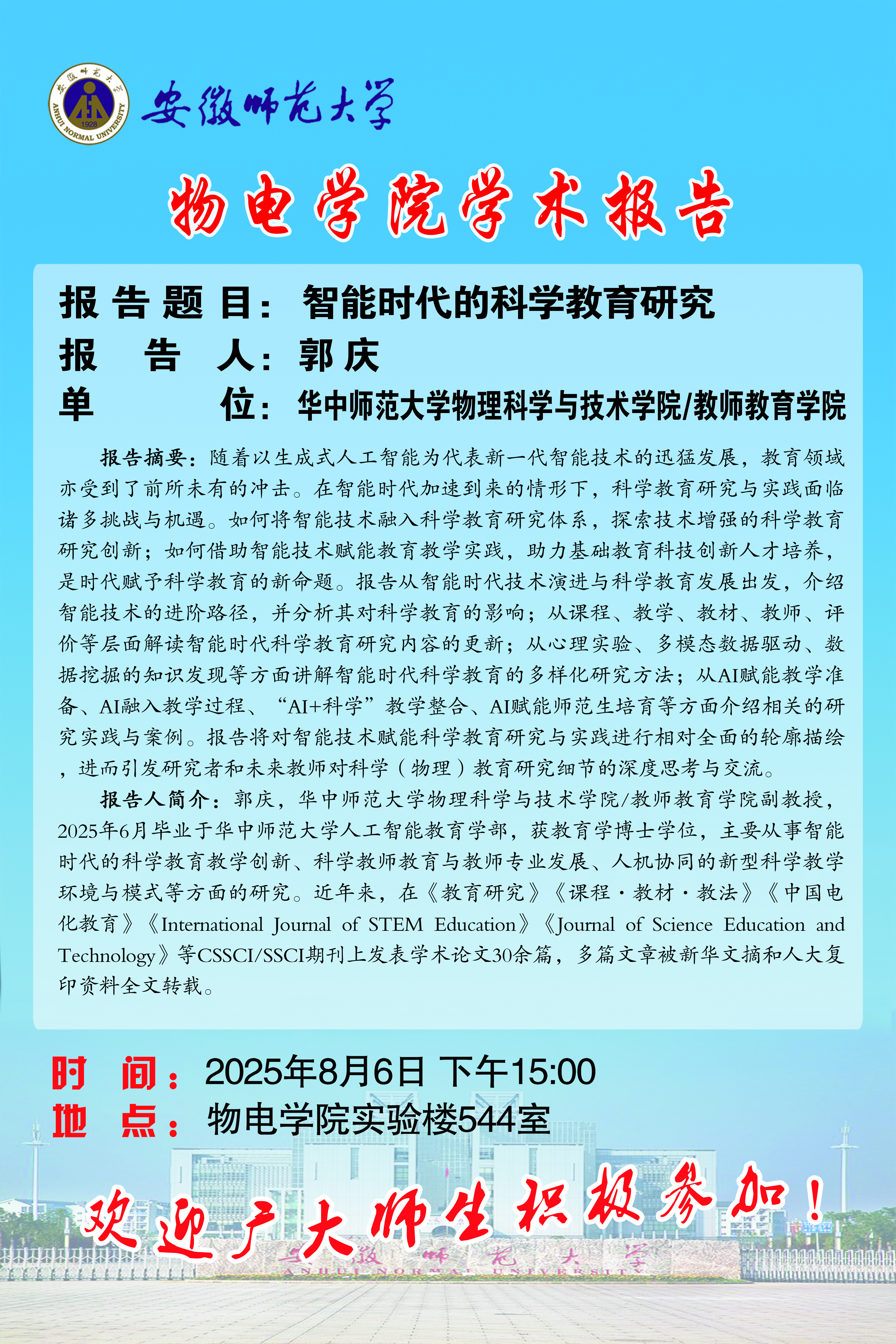 地址:花津校区-安徽省芜湖市九华南路189号 邮编:241000 电话:0553--3869894