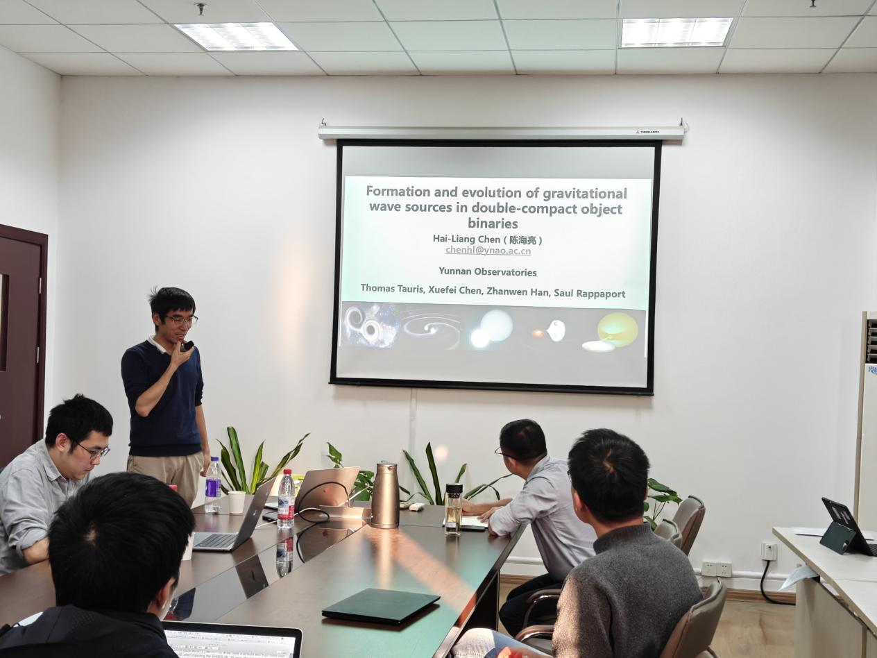 云南天文台研究员陈海亮于11月12日来校进行学术交流,并做了题为《Formation and evolution of gravitational wave sources in white dwarf binaries and neutron star binaries》的学术报告。报告会在免费足球直播app