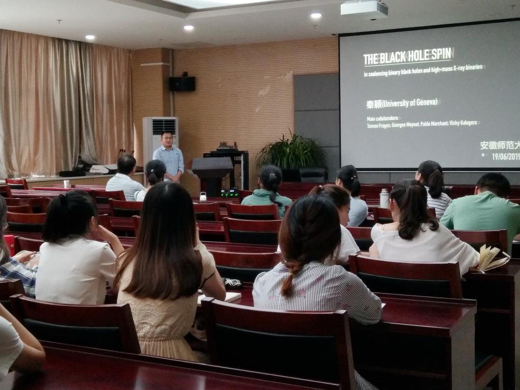 进行学术交流,并作了题为《The black hole spin in coalescing binary black holes and high-mass X-ray binaries》的学术报告。报告会在免费足球直播app