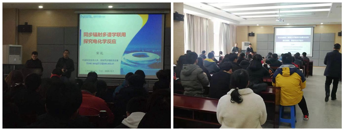 邀请,中国科学技术大学国家同步辐射实验室的宋礼教授和中国科学技术大学的武晓君教授近期来校开展学术交流,并于12月1日上午分别作了题为《同步辐射多谱学联用探究电化学反应》和《可见光响应的非金属纳米光解水催化材料的理论模拟、筛选与分子设计》的学术报告。报告会在免费足球直播app
