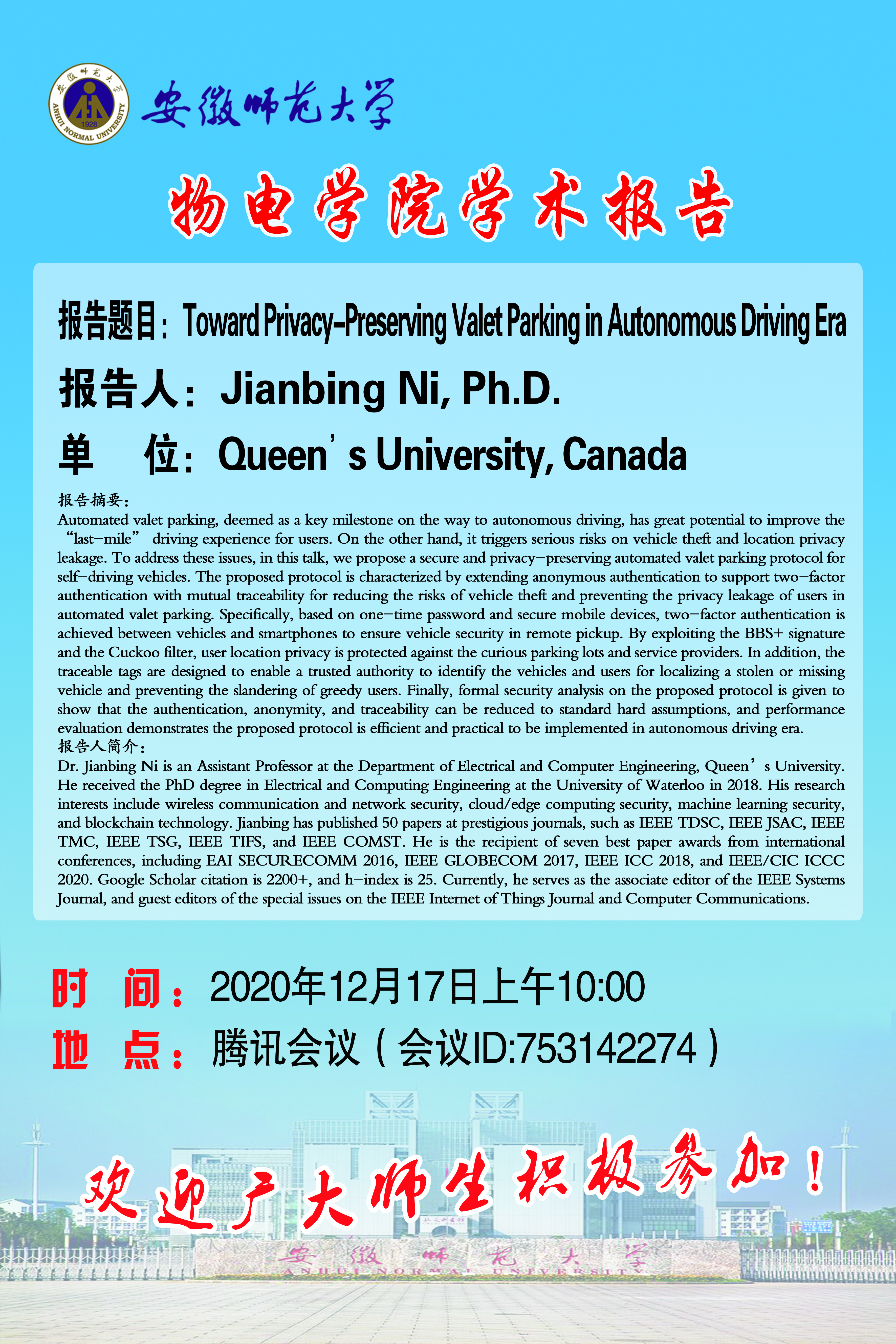 地址:花津校区-安徽省芜湖市九华南路189号 邮编:241000 电话:0553--3869894