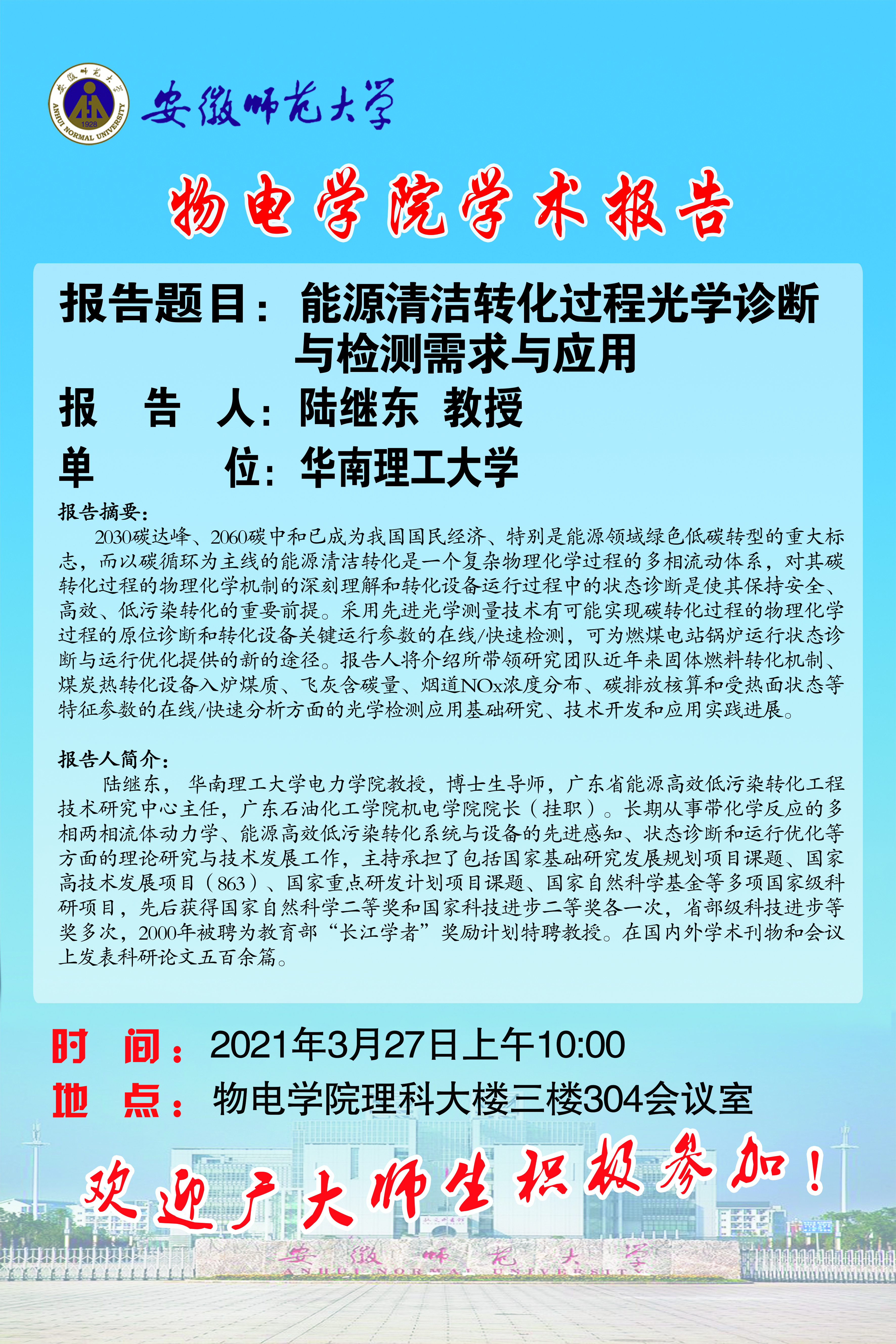 【学术预告】陆继东 教授(华南理工大学):能源清洁转化过程光学诊断与检测需求与应用