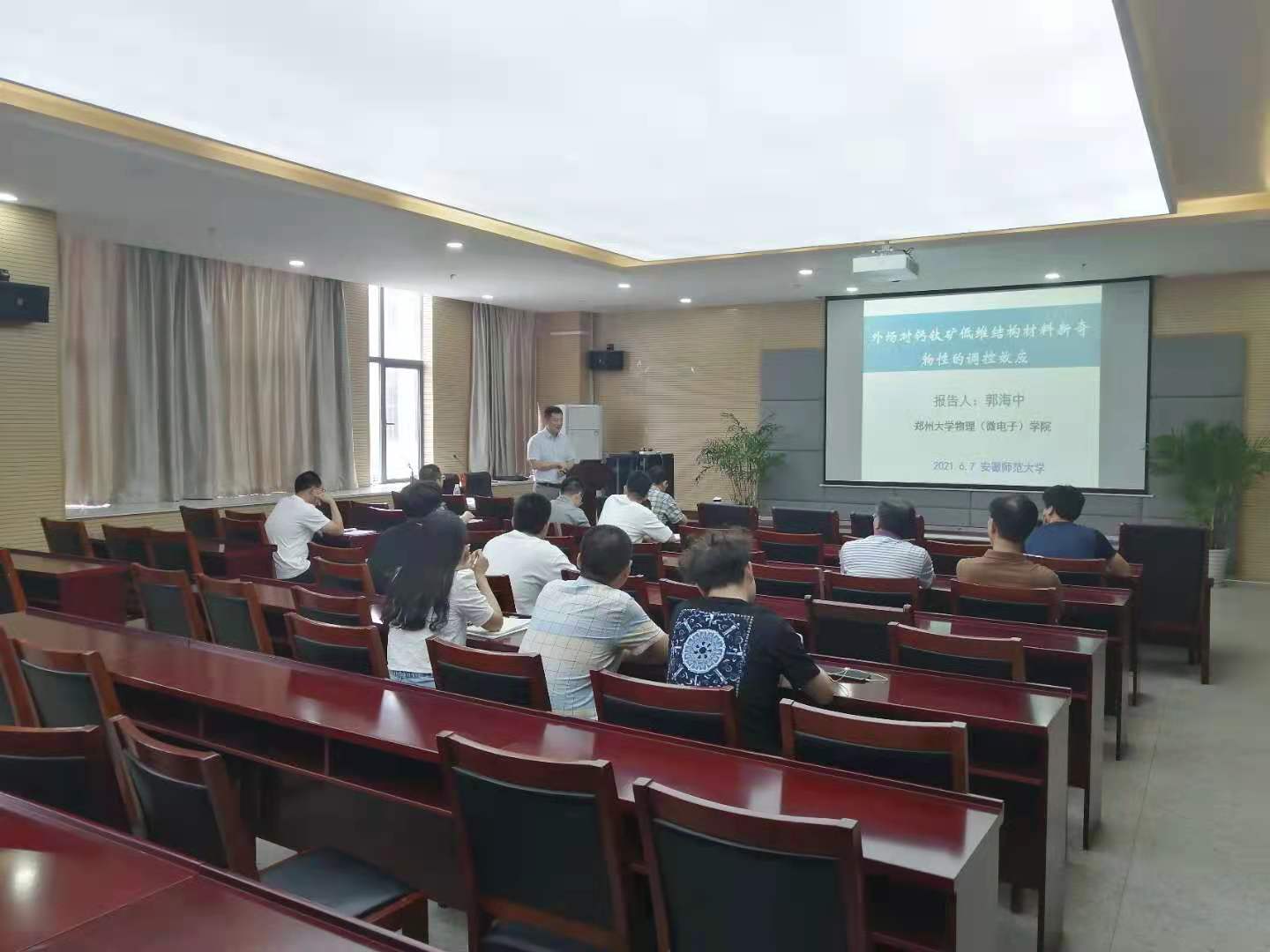 邀请,郑州大学郭海中教授于6月7日来校开展学术交流,并作了题为《外场对钙钛矿低维结构材料新奇物性的调控效应》的学术报告。报告会在免费足球直播app