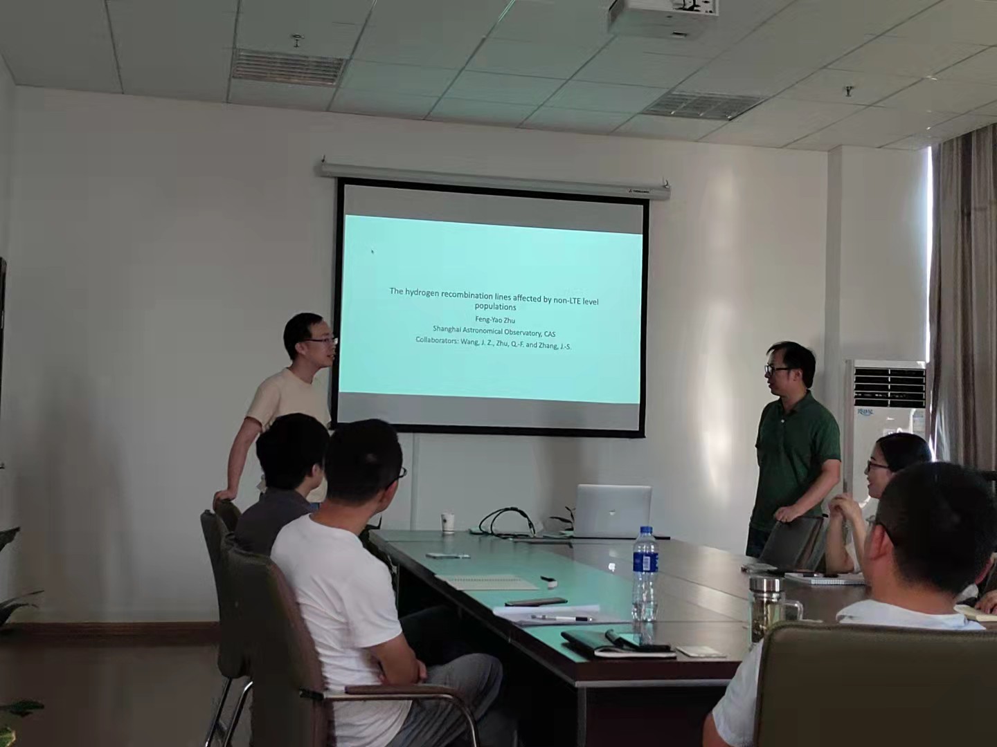 在本次报告会上,朱逢尧博士简要介绍了氢原子复合辐射在天文学中的应用,重点讲解了氢的射电复合谱线在探究恒星周围电离氢区结构和性质中的重要价值,并阐述了经典的、在局域热动平衡(LTE)假设下计算出的氢的能级分布和真实观测结果的偏离。为了得到与观测吻合的能级分布和谱线相对强度,必须抛弃局域热动平衡假设,并重新从基本物理出发开始计算。朱逢尧博士详细介绍了他的计算方法、过程和结果,以及与前人工作的区别;展示了将其计算结果应用于解释电离氢区射电谱线相对强度、理解射电复合脉泽辐射等具体天文学问题的前景。报告会结束后,与会的各位老师和同学就自己关心的问题与朱逢尧博士展开热烈讨论和详细交流。