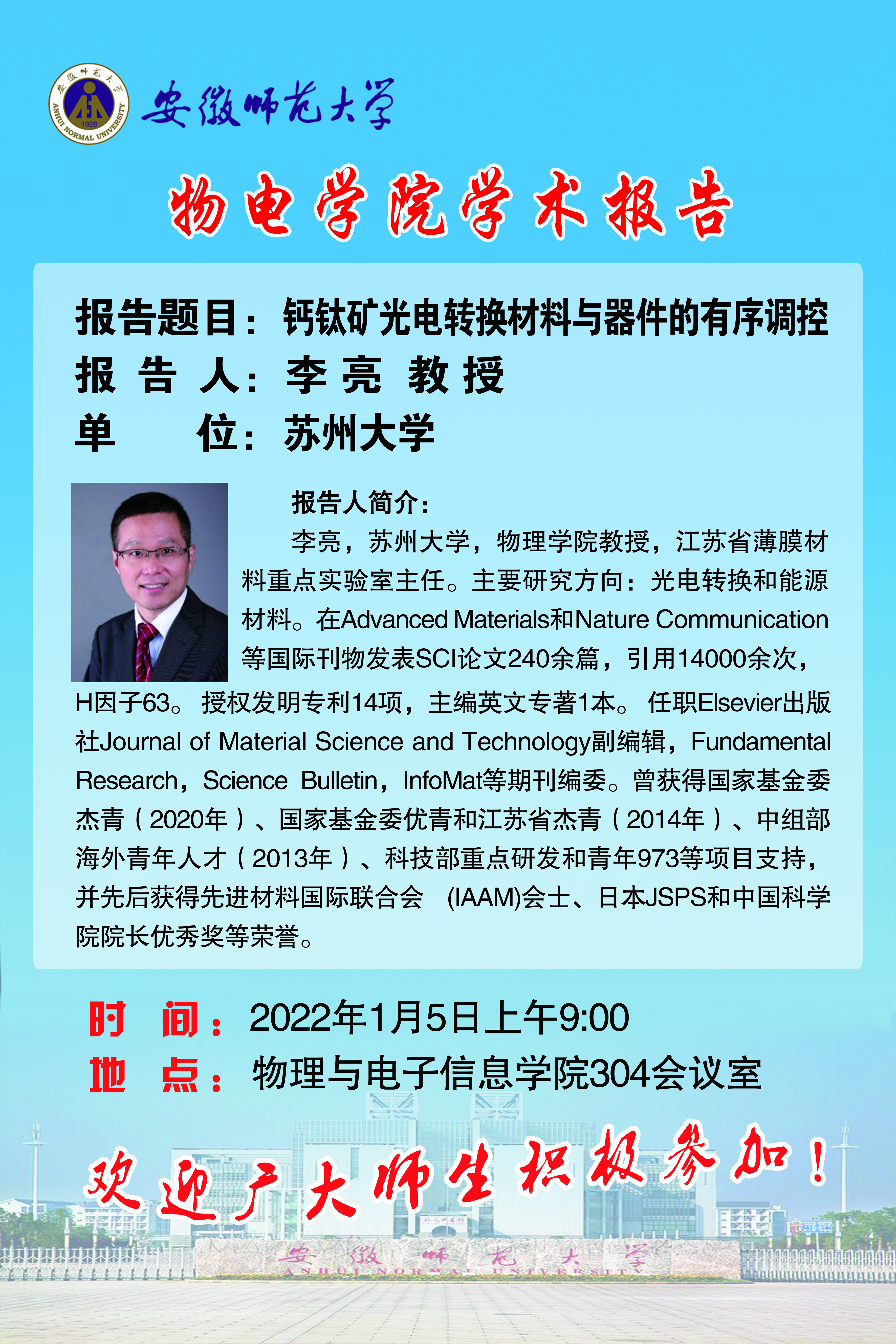 地址:花津校区-安徽省芜湖市九华南路189号 邮编:241000 电话:0553--3869894