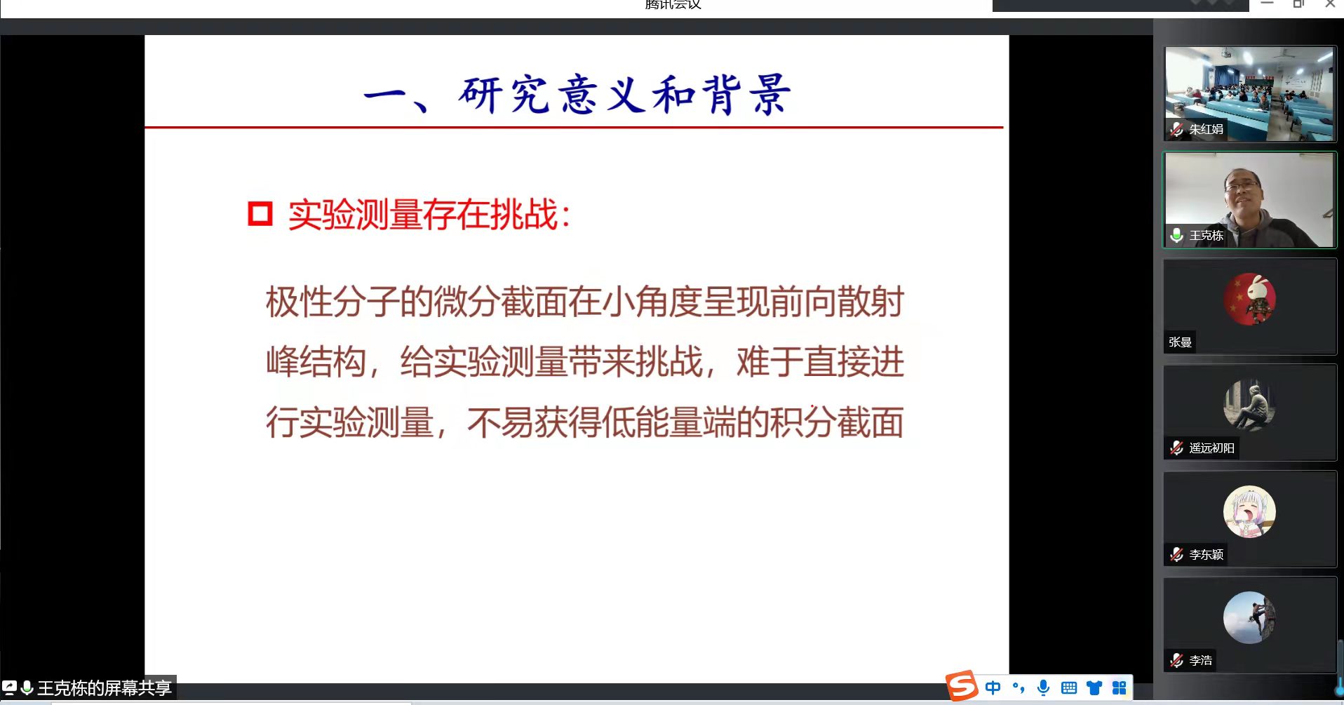 邀请,河南师范大学王克栋教授于4月30日与我校师生开展线上学术交流,并作了题为《低能电子分子散射共振态及其动力学研究》的学术报告。报告会通过腾讯会议(会议号:288795291)举行,由免费足球直播app