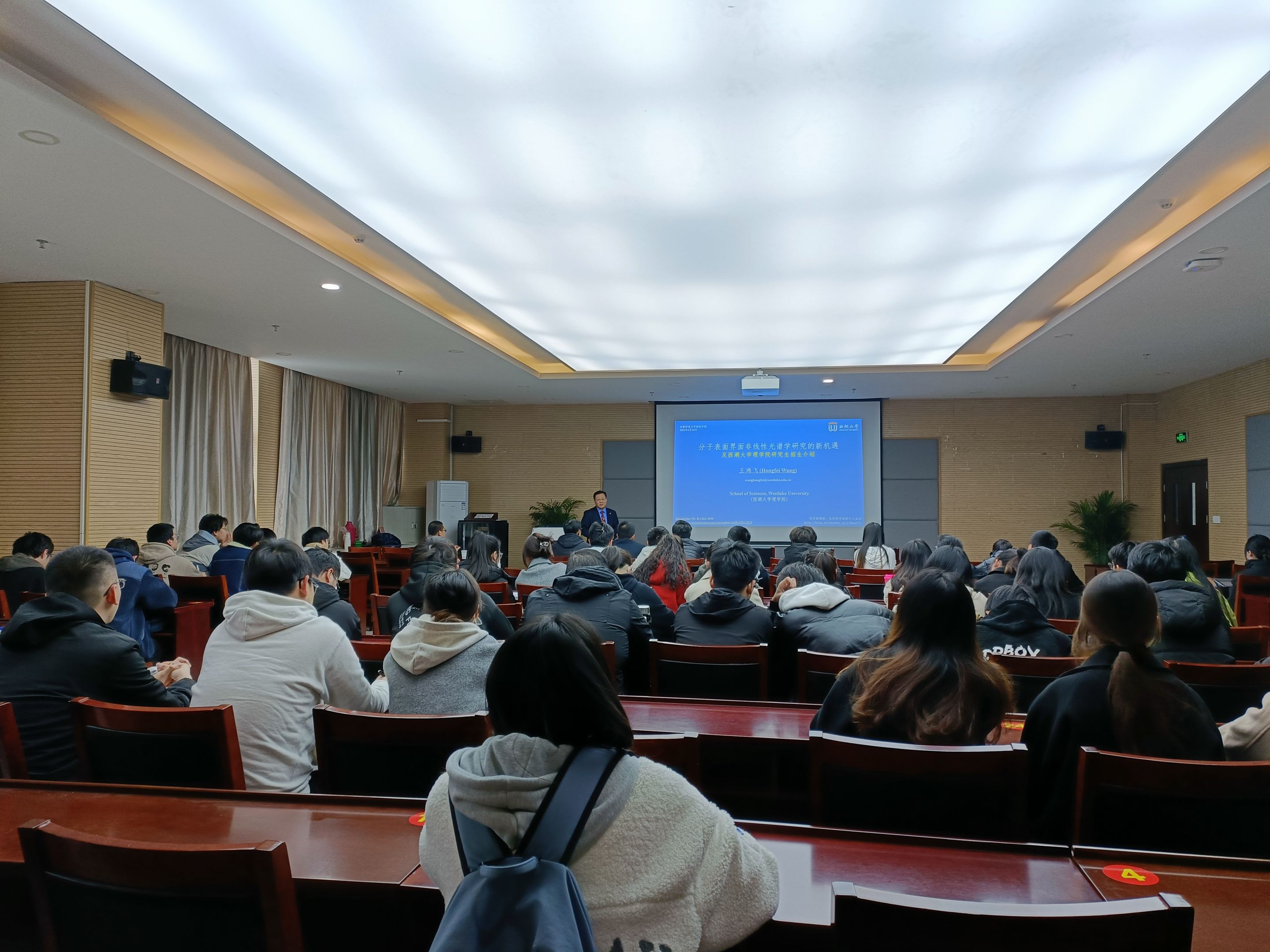邀请,西湖大学王鸿飞教授于3月24日来校进行学术交流,并做了题为《分子表面和界面非线性光谱学研究的新机遇》的学术报告。报告会在免费足球直播app