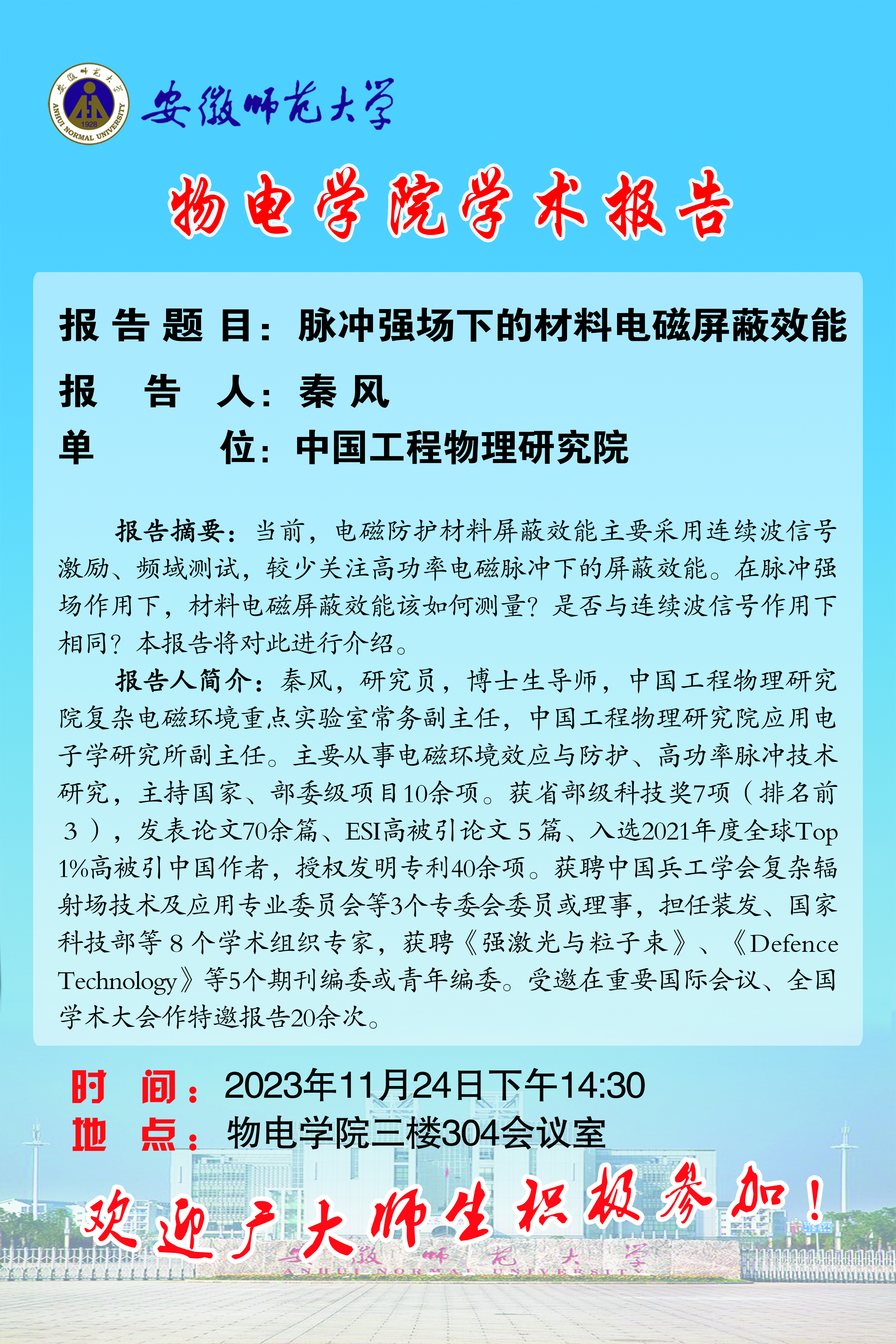 地址:花津校区-安徽省芜湖市九华南路189号 邮编:241000 电话:0553--3869894