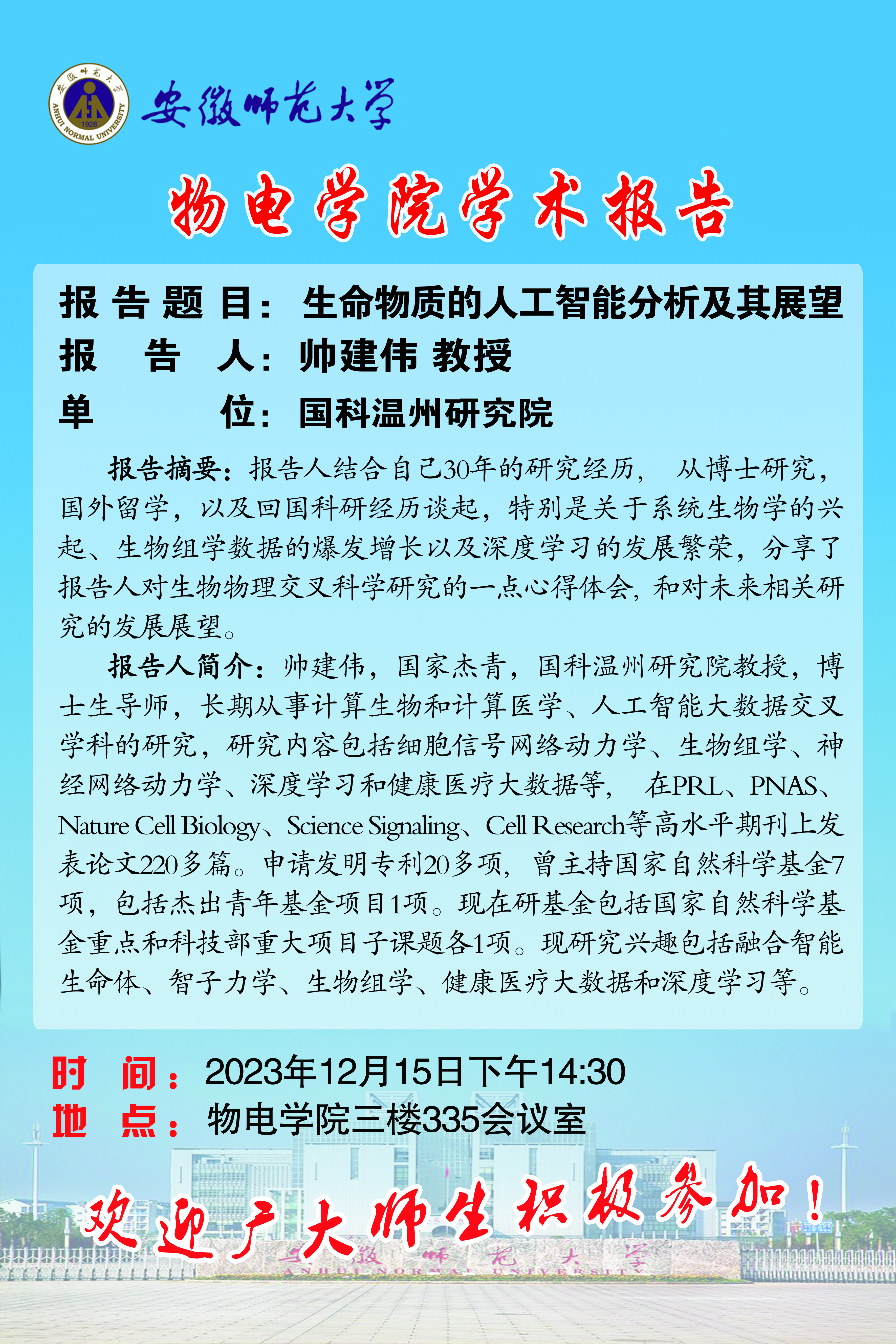 地址:花津校区-安徽省芜湖市九华南路189号 邮编:241000 电话:0553--3869894