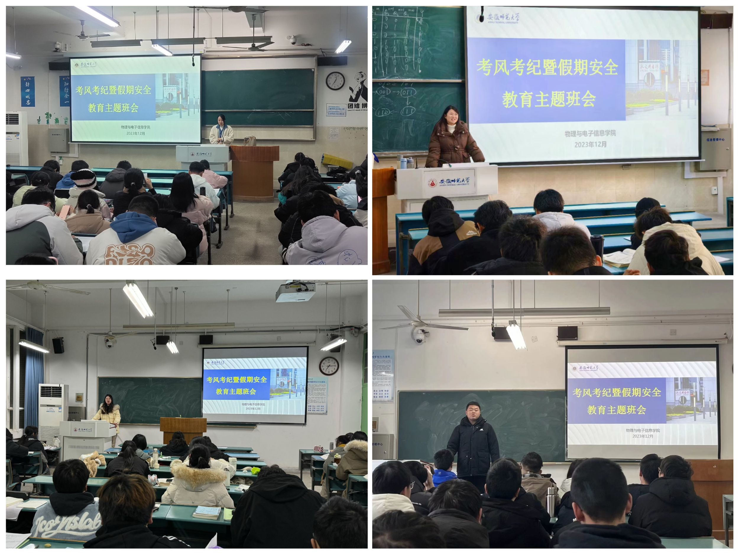 领导“四联系”制度,领导班子成员进班级讲考风话安全,做到未雨绸缪,看在前、防在前,确保把问题隐患发现在未萌之时。各年级辅导员开展考风考纪暨假期安全教育主题班会,通过典型案例提醒同学们规避风险,牢牢守住诚信底线和安全防线。